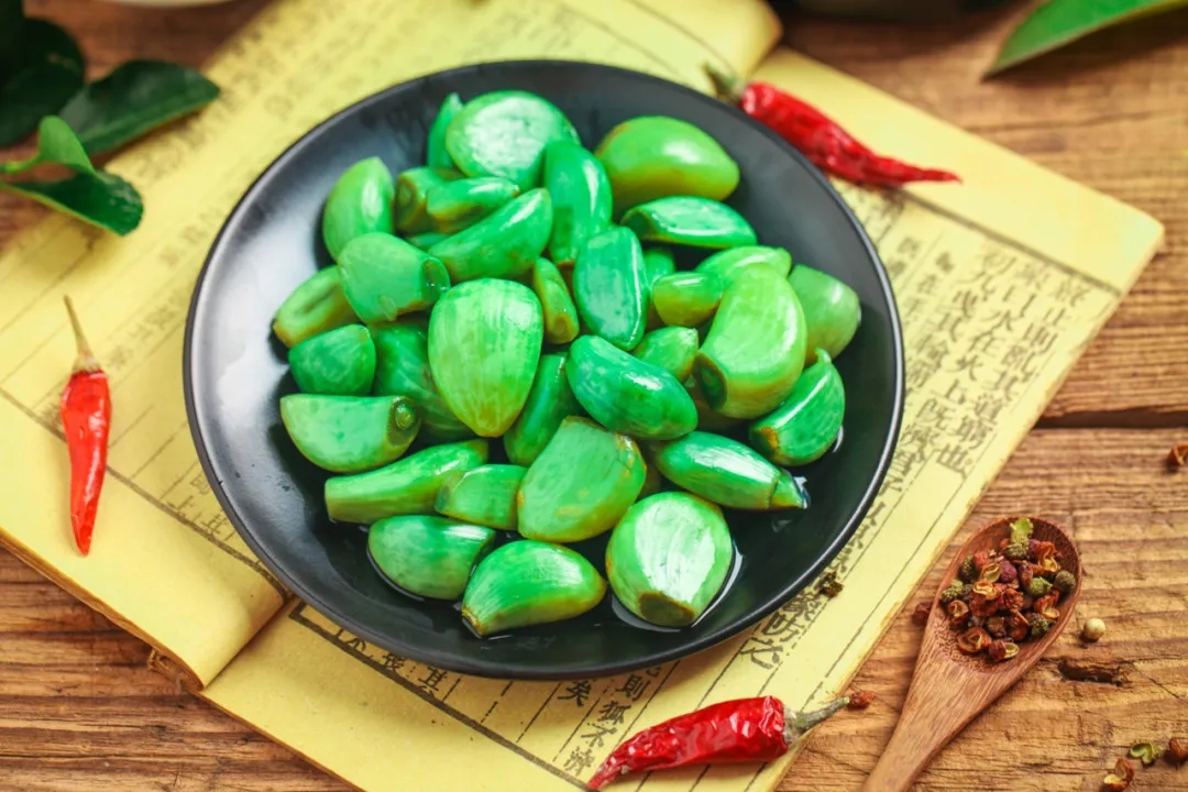 此外,全國各地還有做臘八面、泡臘八蒜、曬臘八豆腐等食俗。相傳北方之前有一些不產(chǎn)或少產(chǎn)大米的地方,人們不吃臘八粥,而是吃臘八面。泡臘八蒜,即將蒜瓣去掉老皮,浸泡在醋中,到了過年搭配餃子吃,是北方尤其華北地區(qū)的一個(gè)習(xí)慣。民間還有“蒜”與“算”字同音,商戶要在這天算清收支盈虧的說法。